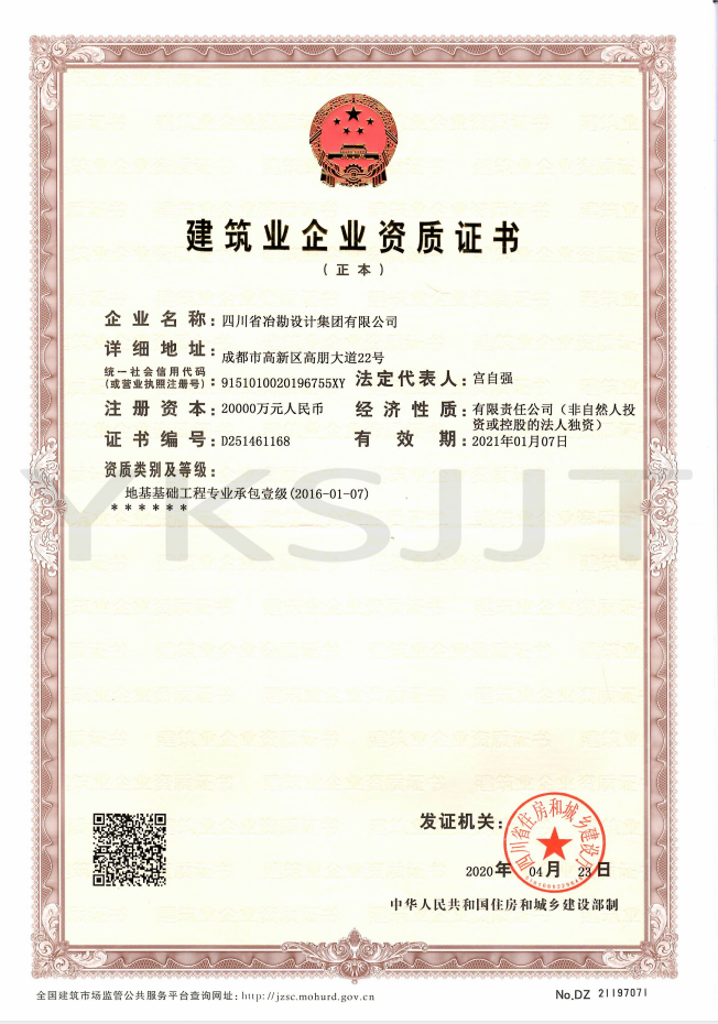 建筑業(yè)企業(yè)資質(zhì)證書(shū)(市政公用工程施工總承包二級(jí);水利水電工程施工總承包二級(jí);環(huán)保工程專業(yè)承包二級(jí);地基基礎(chǔ)工程專業(yè)承包一級(jí))